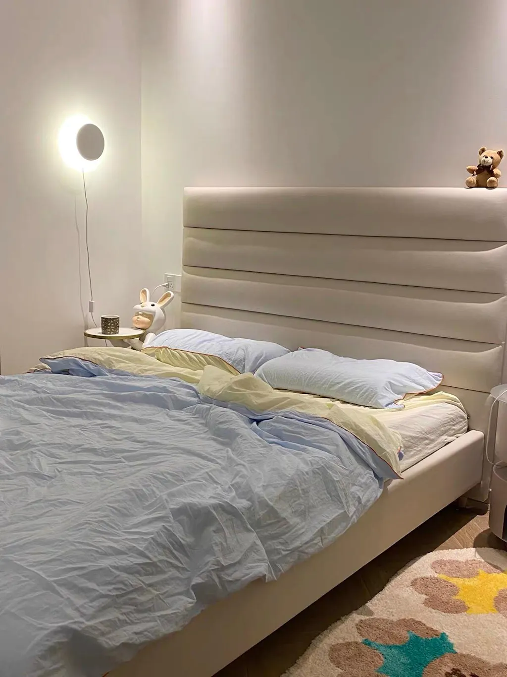 If your bedroom feels busy, this solid design restores visual balance. It creates a clear focal point while keeping everything soft and neutral. The result feels intentional and composed. Ideal for a minimalist reset.