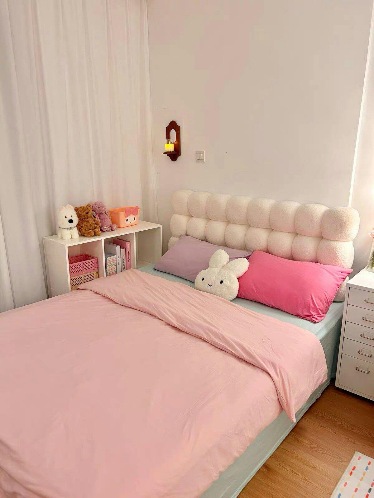 Style with pastel pillows, warm lighting, and neutral decor for a dreamy, cozy vibe.