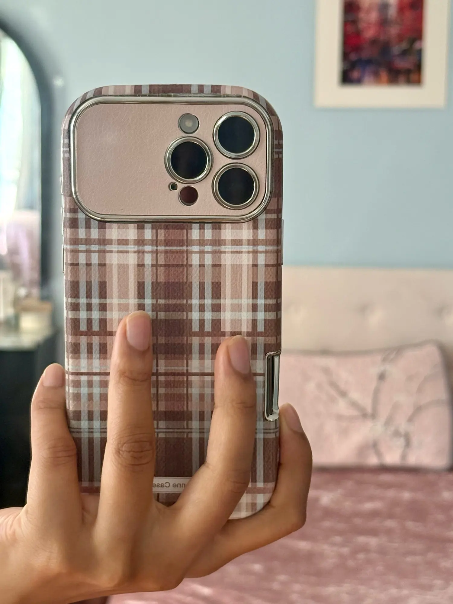 Meet the Preppy Plaid iPhone Case — a brown “milk-tea” tartan cover with a soft matte feel and shiny camera bumper. Quiet-luxury look, everyday drop-friendly protection, campus-to-office ready.